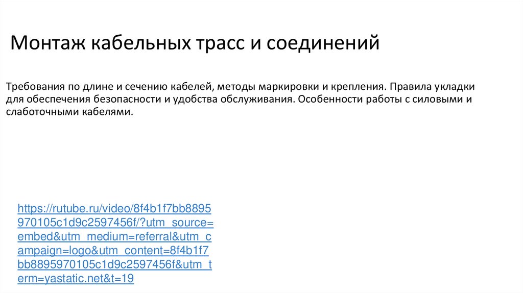 Монтаж кабельных трасс и соединенийТребования по длине и сечению кабелей, методы маркировки и крепления. Правила укладки