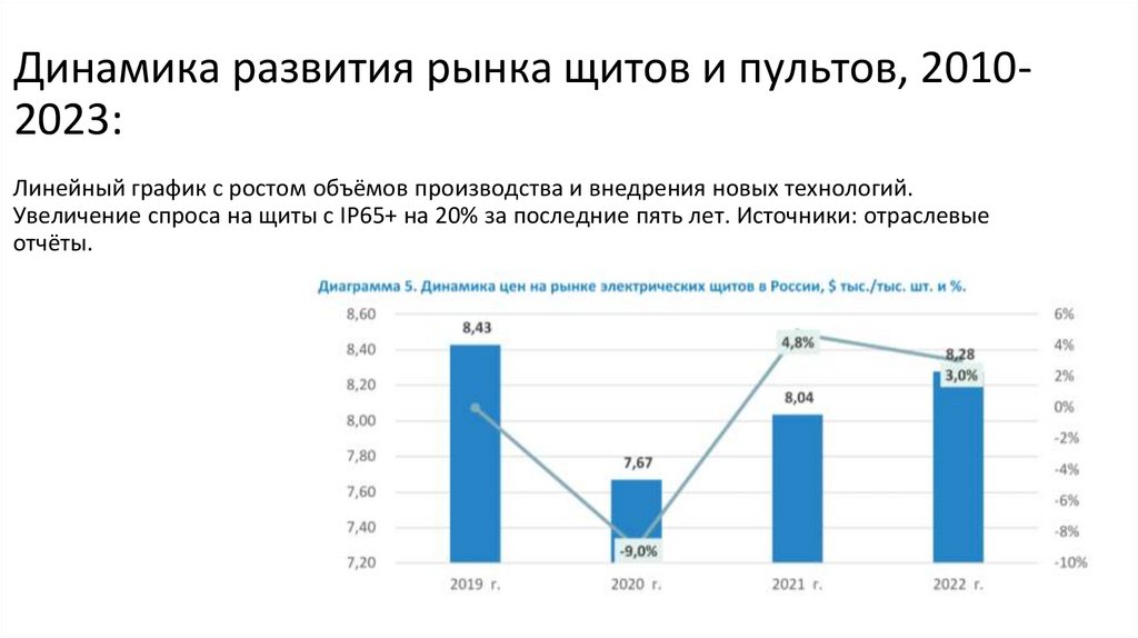 Увеличение спроса на щиты с IP65+ на 20% за последние пять лет. Источники: отраслевые