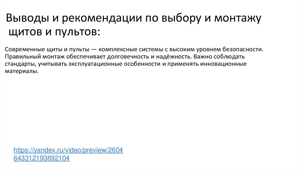 Выводы и рекомендации по выбору и монтажущитов и пультов: