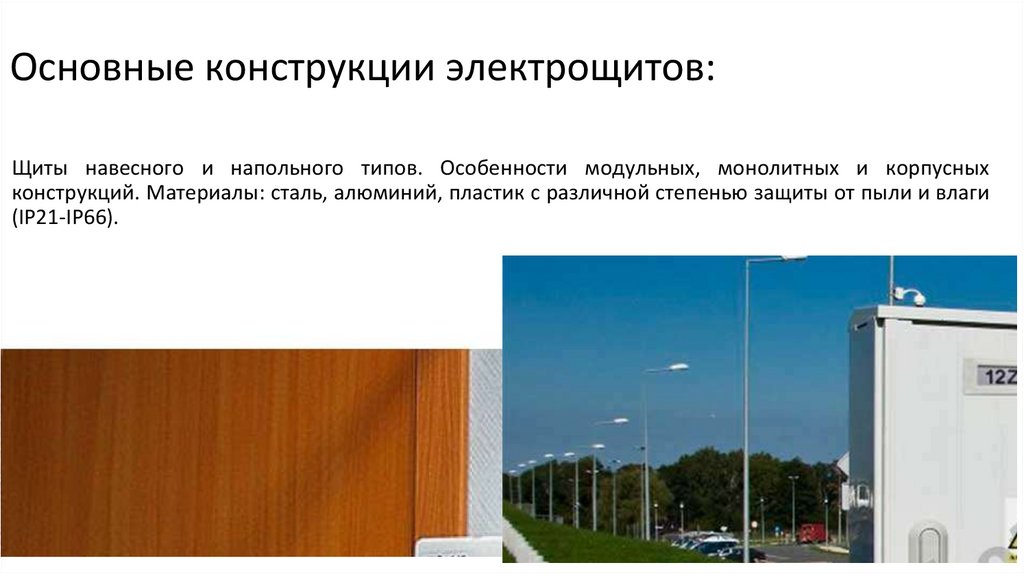 Основные конструкции электрощитов:Щиты навесного и напольного типов. Особенности модульных, монолитных и корпусных