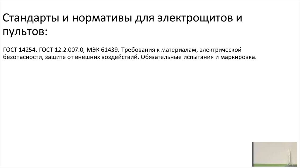 ГОСТ 14254, ГОСТ 12.2.007.0, МЭК 61439. Требования к материалам, электрической