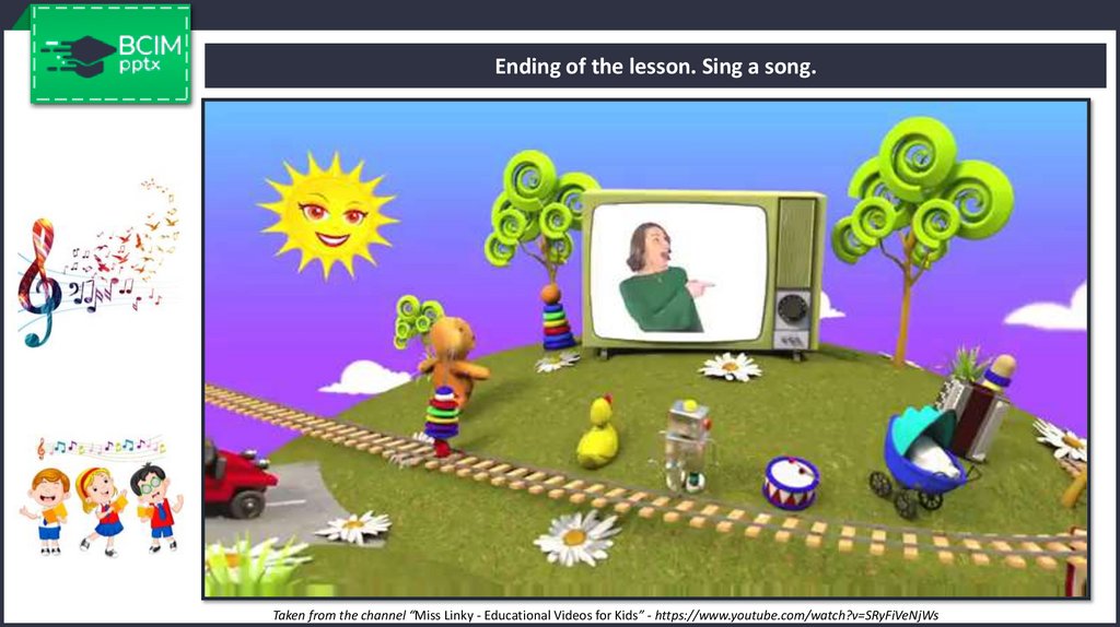 Ending of the lesson. Sing a song.Taken from the channel “Miss Linky - Educational Videos for Kids” - https://www.youtube.com/watch?v=SRyFiVeNjWs