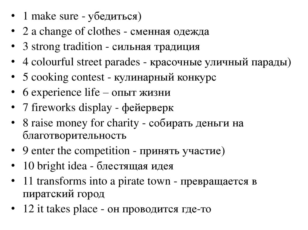 • 1 make sure - убедиться)• 2 a change of clothes - сменная одежда