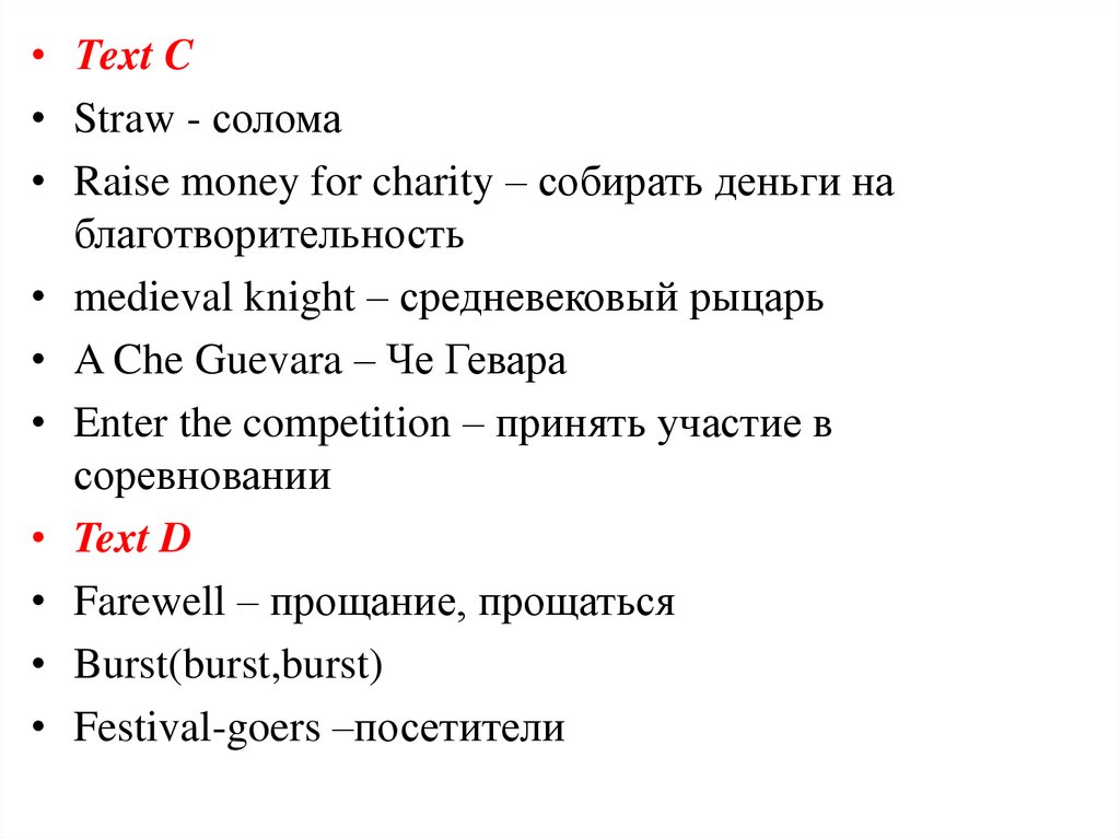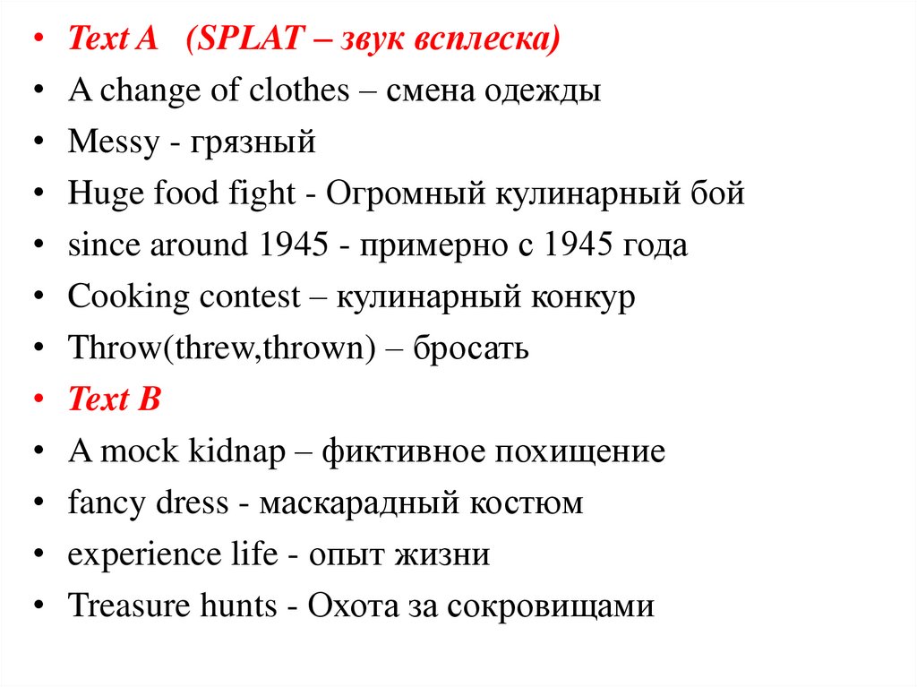 • Text A (SPLAT – звук всплеска)• A change of clothes – смена одежды