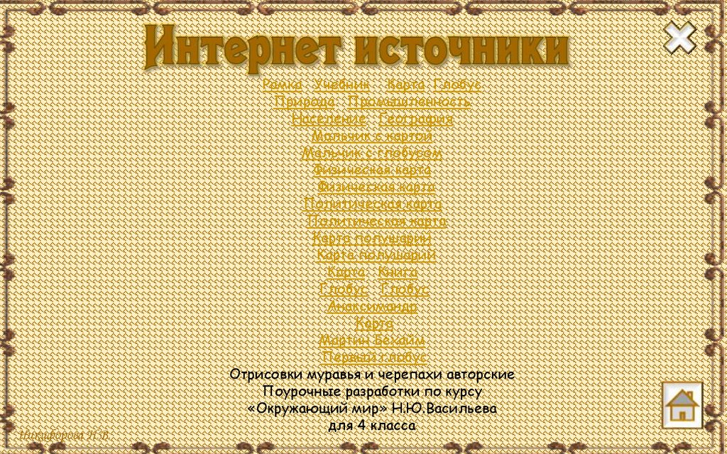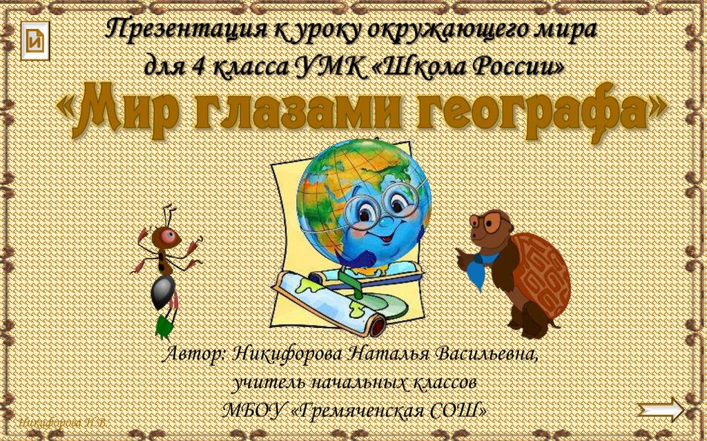 Никифорова Н.В.Рамка Учебник Карта Глобус
