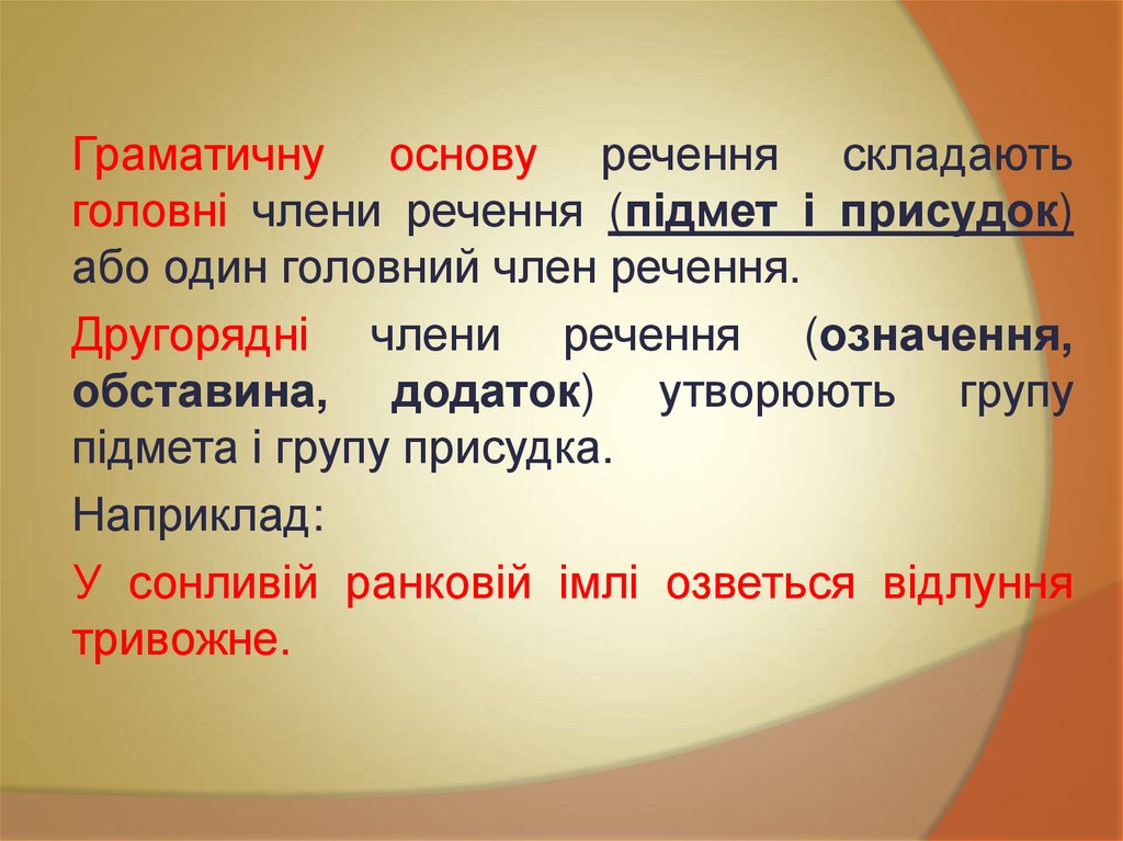 Граматичну основу речення складаютьголовні члени речення (підмет і присудок)