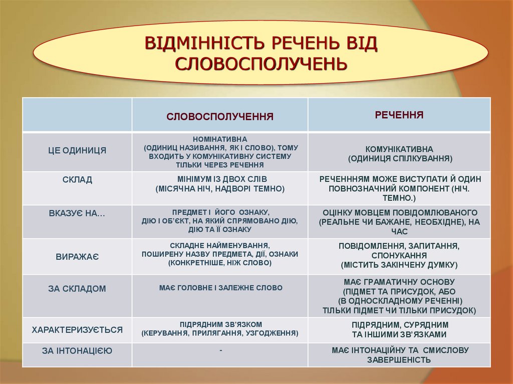 ВІДМІННІСТЬ РЕЧЕНЬ ВІДСЛОВОСПОЛУЧЕНЬ