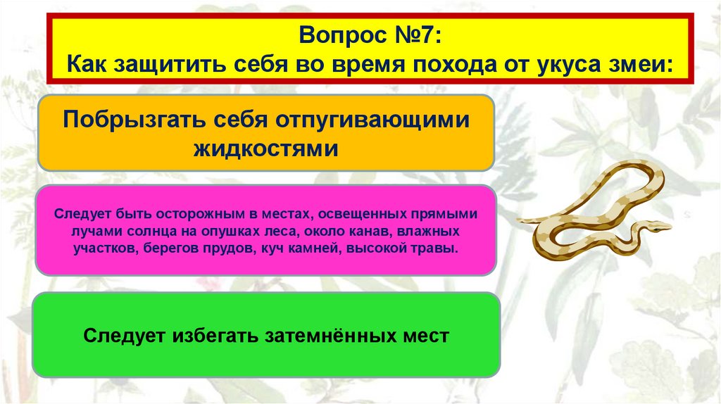 вредными и жалящими насекомыми, ядовитыми змеями.