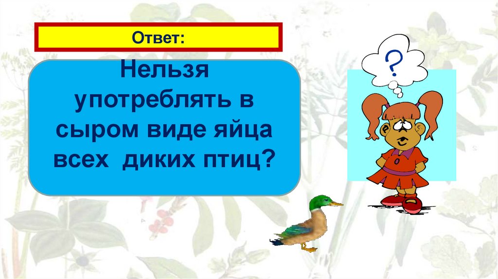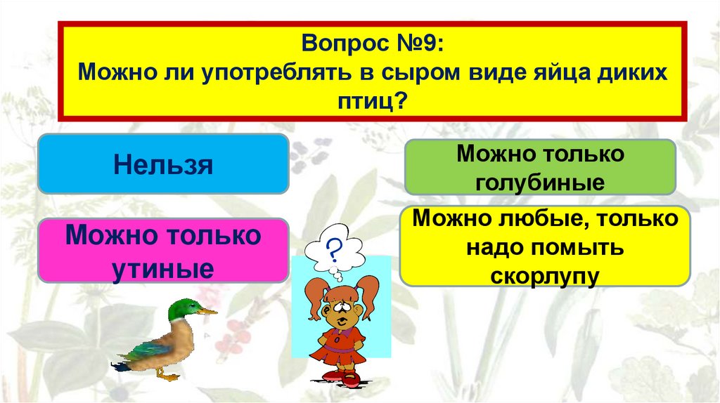 Вопрос №9:Можно ли употреблять в сыром виде яйца диких