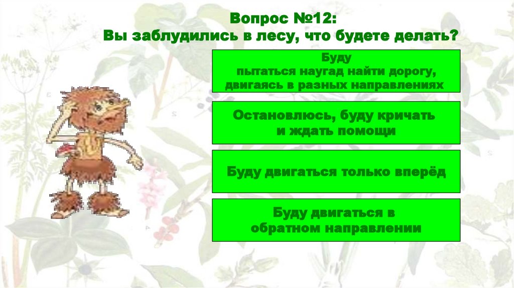 Вопрос №12:Вы заблудились в лесу, что будете делать?