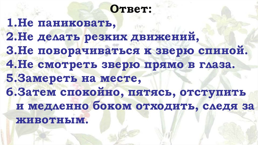 39. Вопрос №18: Как итог, давайте сформулируем правила безопасного поведения на природе?