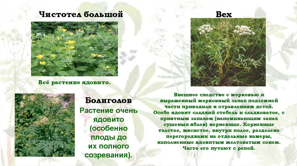 3. Вопрос №1: Назовите ядовитые дикорастущие растения. Какие именно части у этих растений являются ядовитыми?