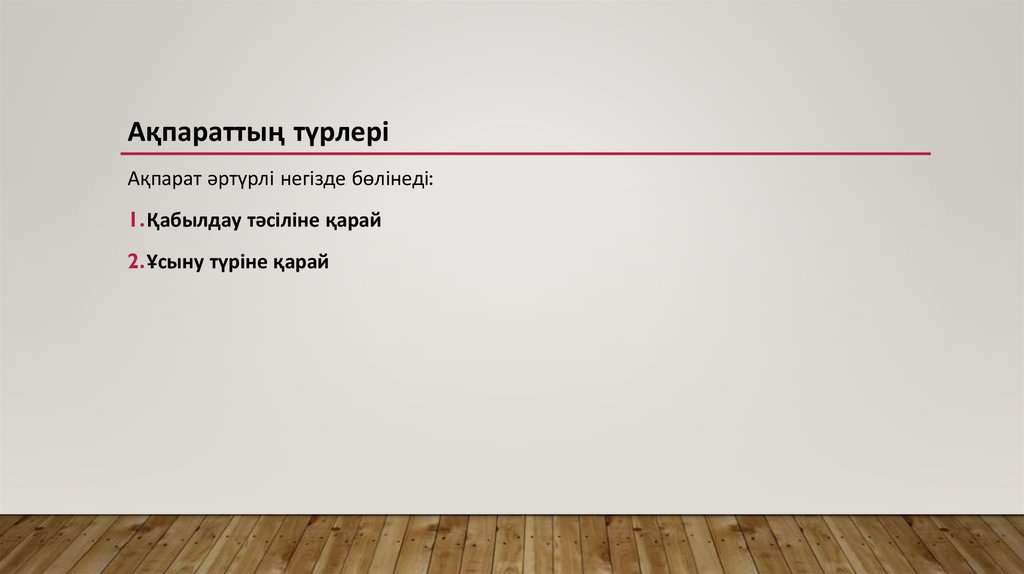 Ақпараттың түрлеріАқпарат әртүрлі негізде бөлінеді:
