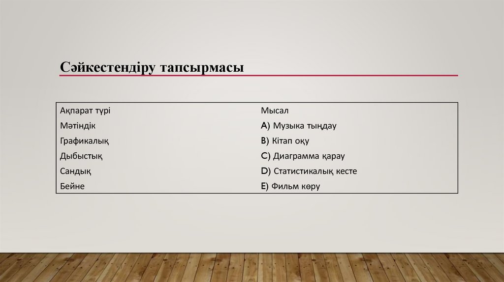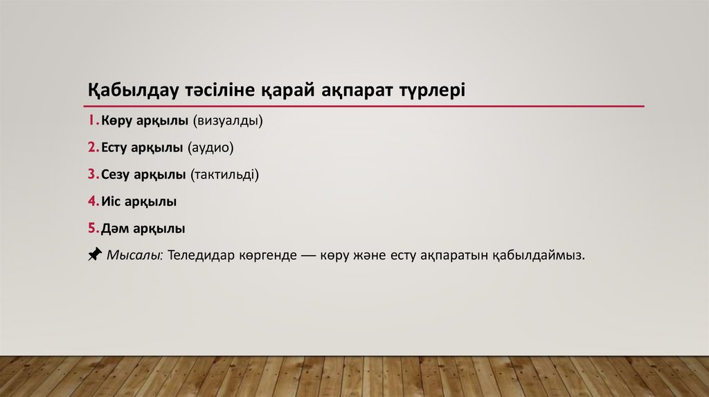 Қабылдау тәсіліне қарай ақпарат түрлері1.Көру арқылы (визуалды)
