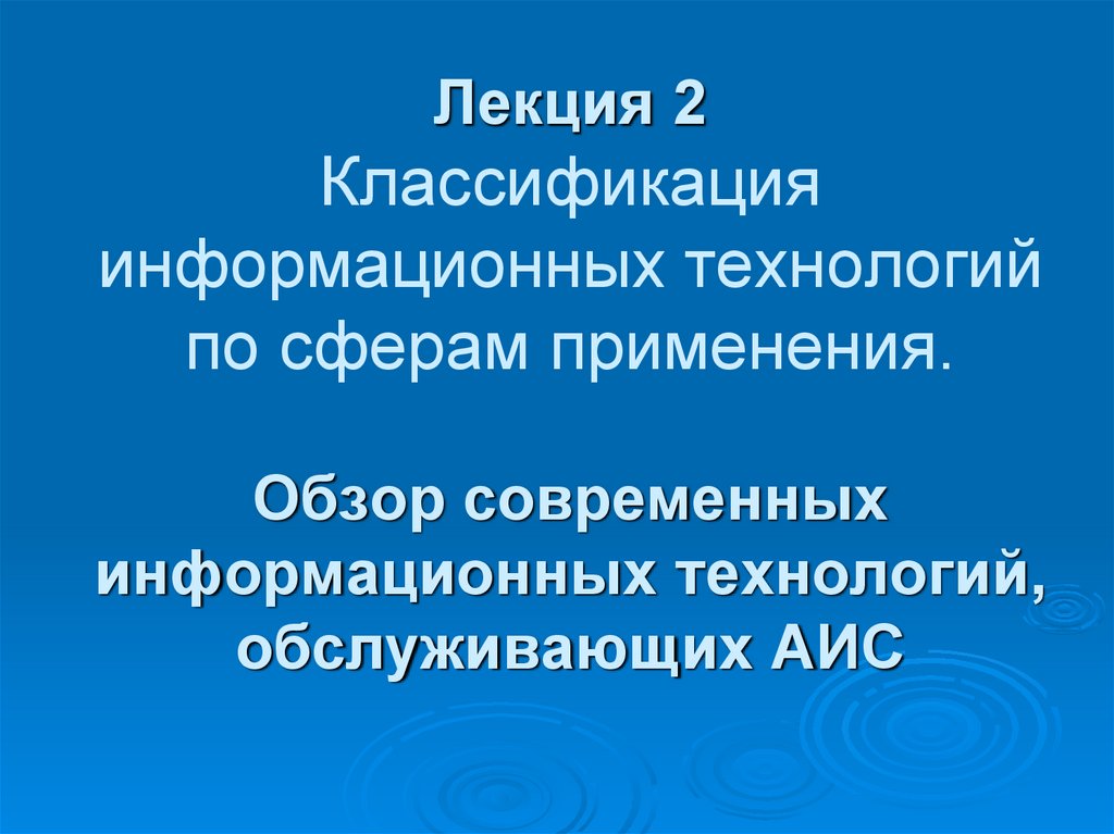 1. Лекция 2 Классификация информационных технологий по сферам применения. Обзор современных информационных технологий,