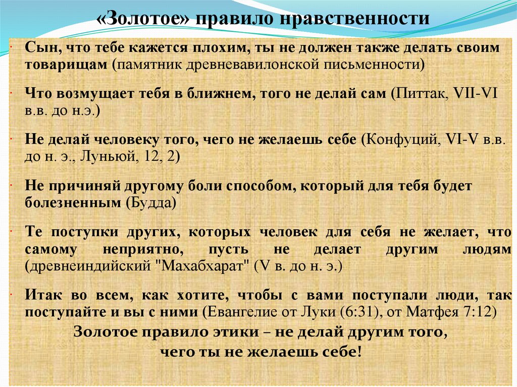 «Золотое» правило нравственности∙ Сын, что тебе кажется плохим, ты не должен также делать своим