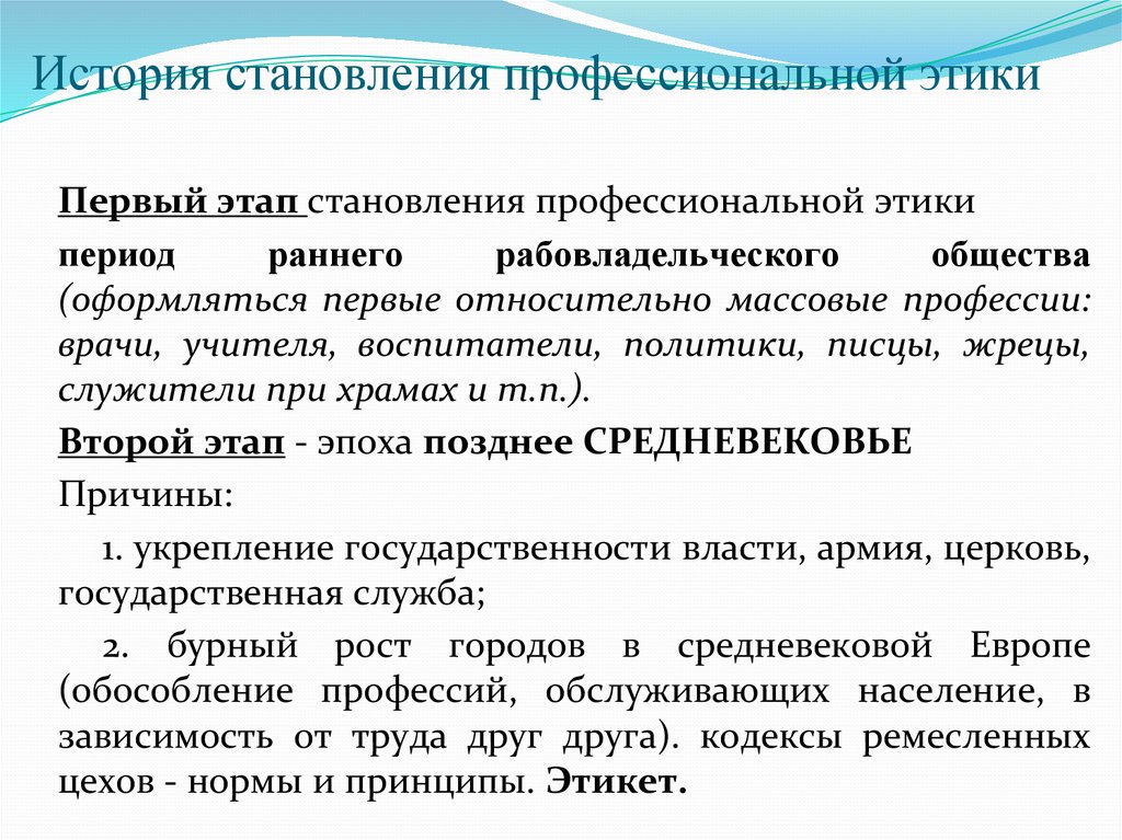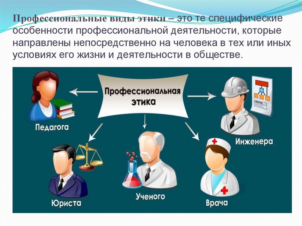 Профессиональные виды этики – это те специфическиеособенности профессиональной деятельности, которые