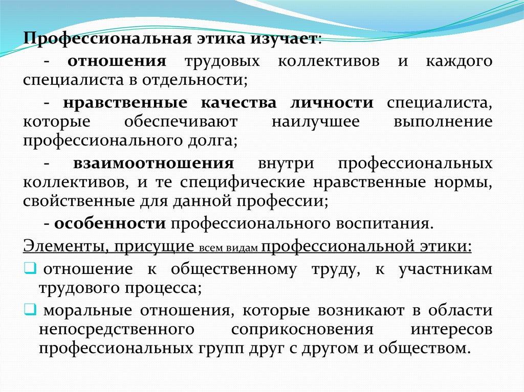 Профессиональная этика изучает:- отношения трудовых коллективов и каждого