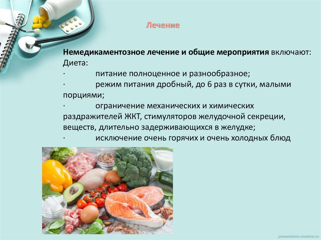ЛечениеНемедикаментозное лечение и общие мероприятия включают: