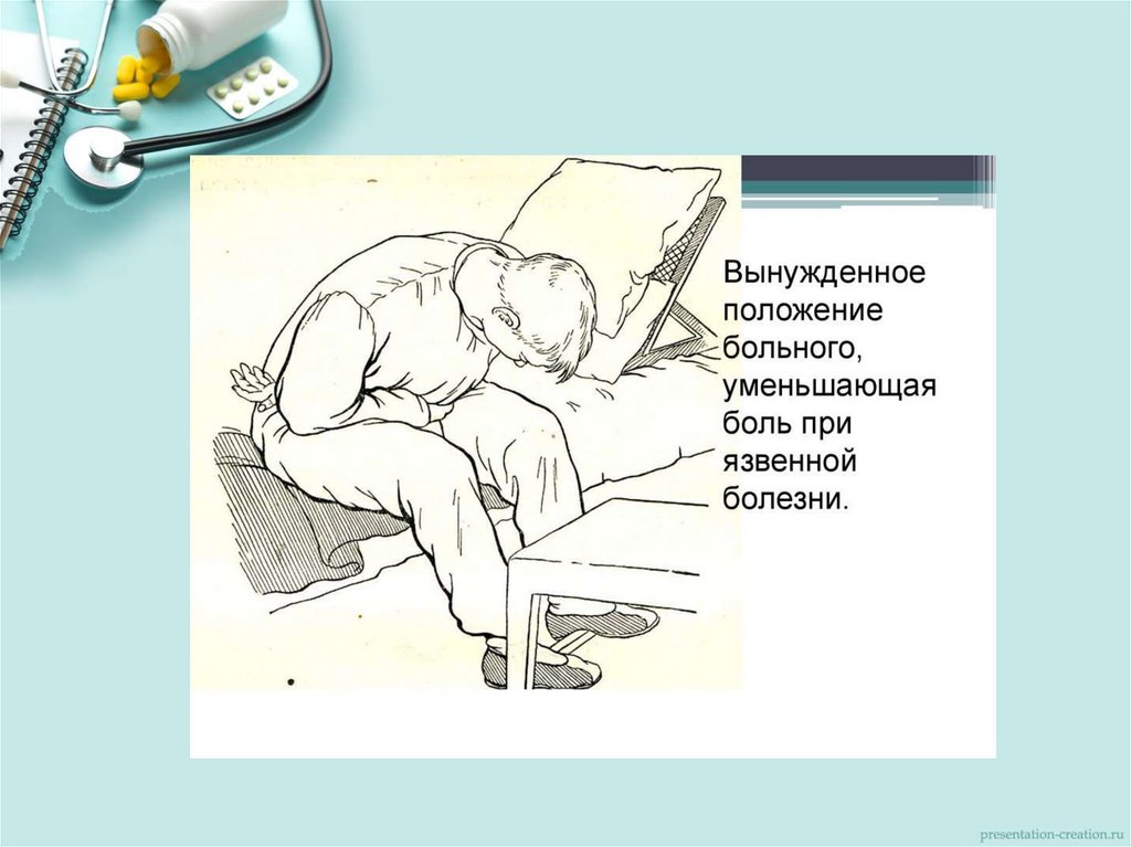 *Положение больных обычно активное. Привыраженном болевом синдроме пациенты могут
