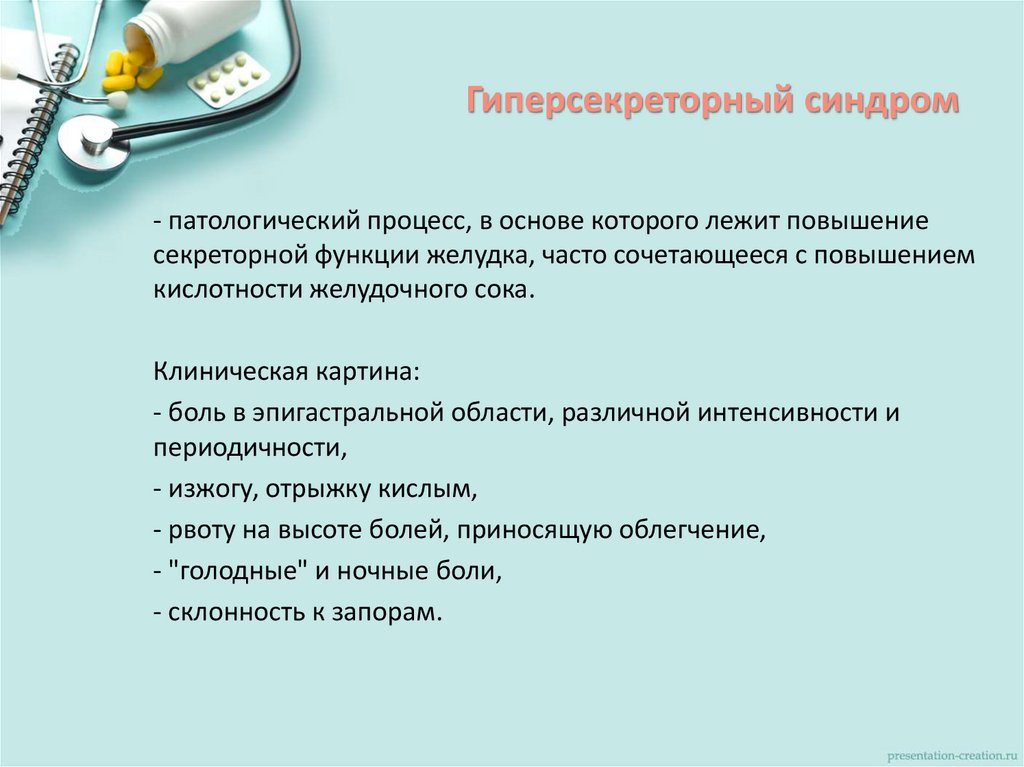 Гиперсекреторный синдром- патологический процесс, в основе которого лежит повышение