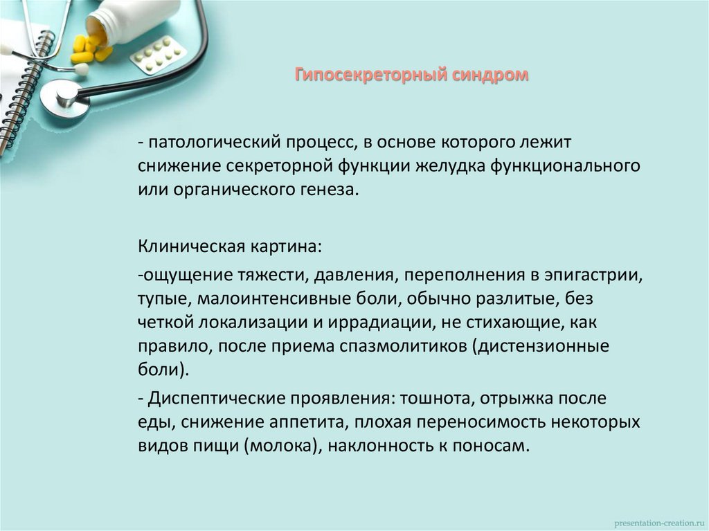 Гипосекреторный синдром- патологический процесс, в основе которого лежит