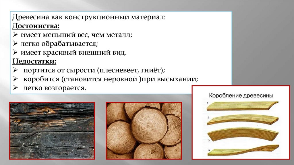 Виды и свойства конструкционных материалов. Древесина