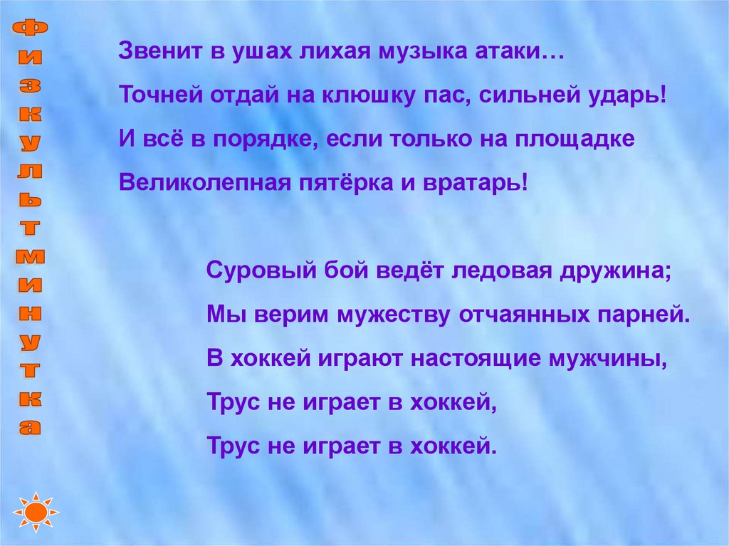Звенит в ушах лихая музыка атаки…Точней отдай на клюшку пас, сильней ударь!