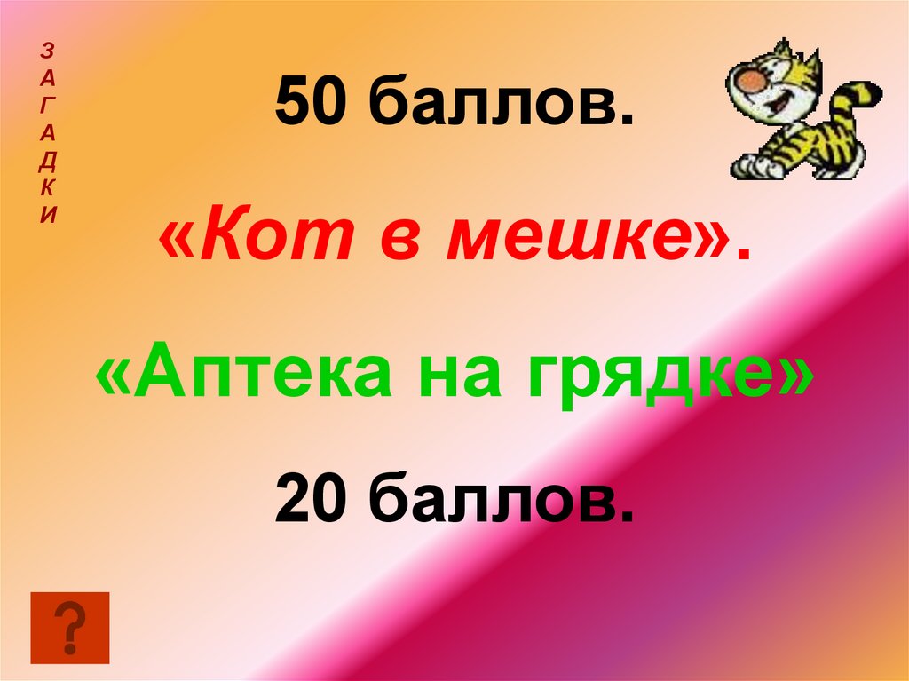 «Кот в мешке» - вопрос можно отдать команде – сопернику.