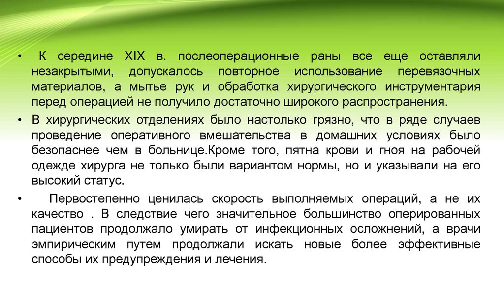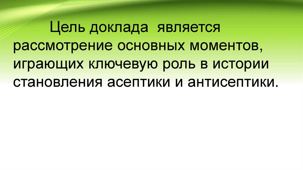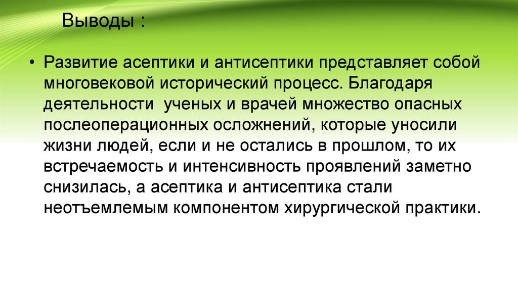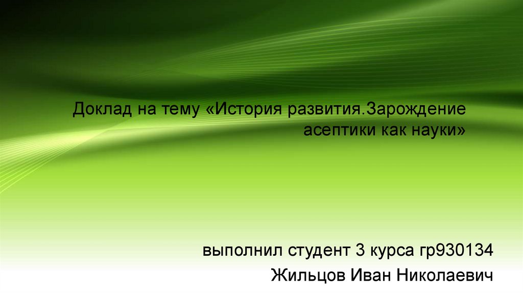 Доклад на тему «История развития.Зарождениеасептики как науки»