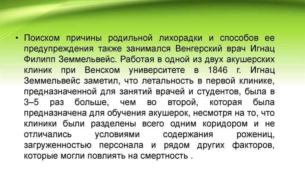 %, а И. Земмельвайс вошел в историю как один из основоположников