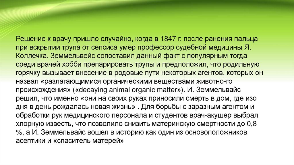 происхождения» («decaying animal organic matter»). И. Земмельвайс