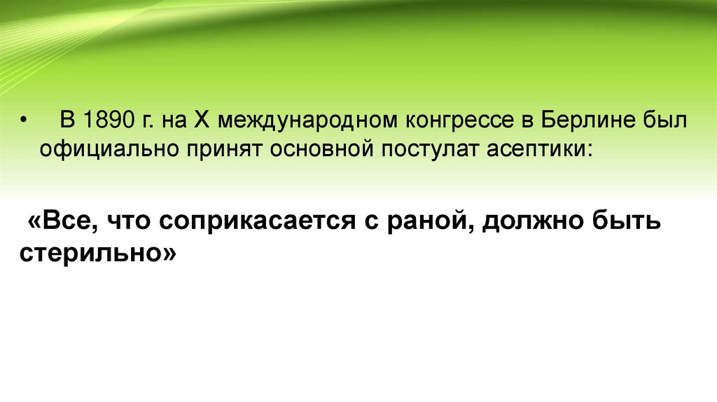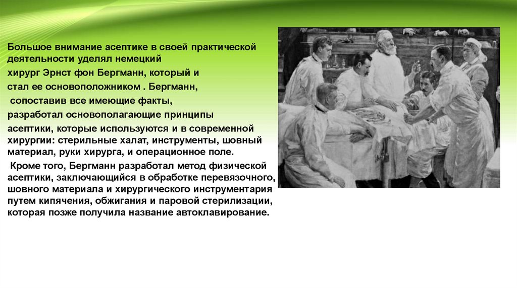 Большое внимание асептике в своей практическойдеятельности уделял немецкий