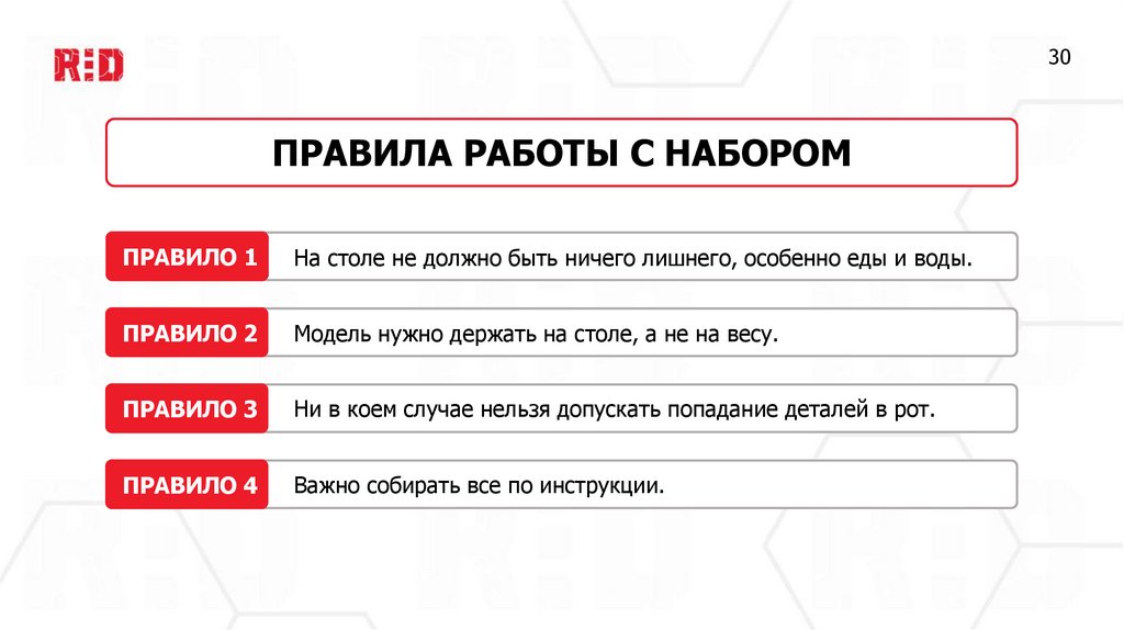 30ПРАВИЛА РАБОТЫ С НАБОРОМ