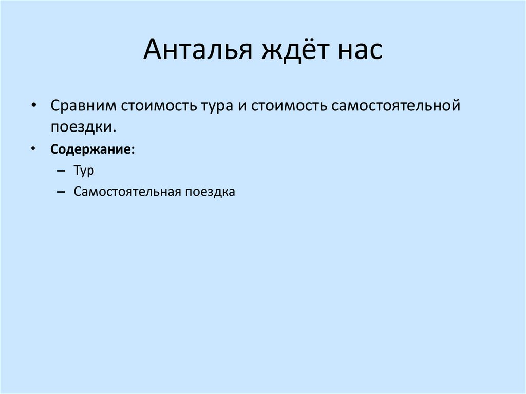 Анталья ждёт нас• Сравним стоимость тура и стоимость самостоятельной