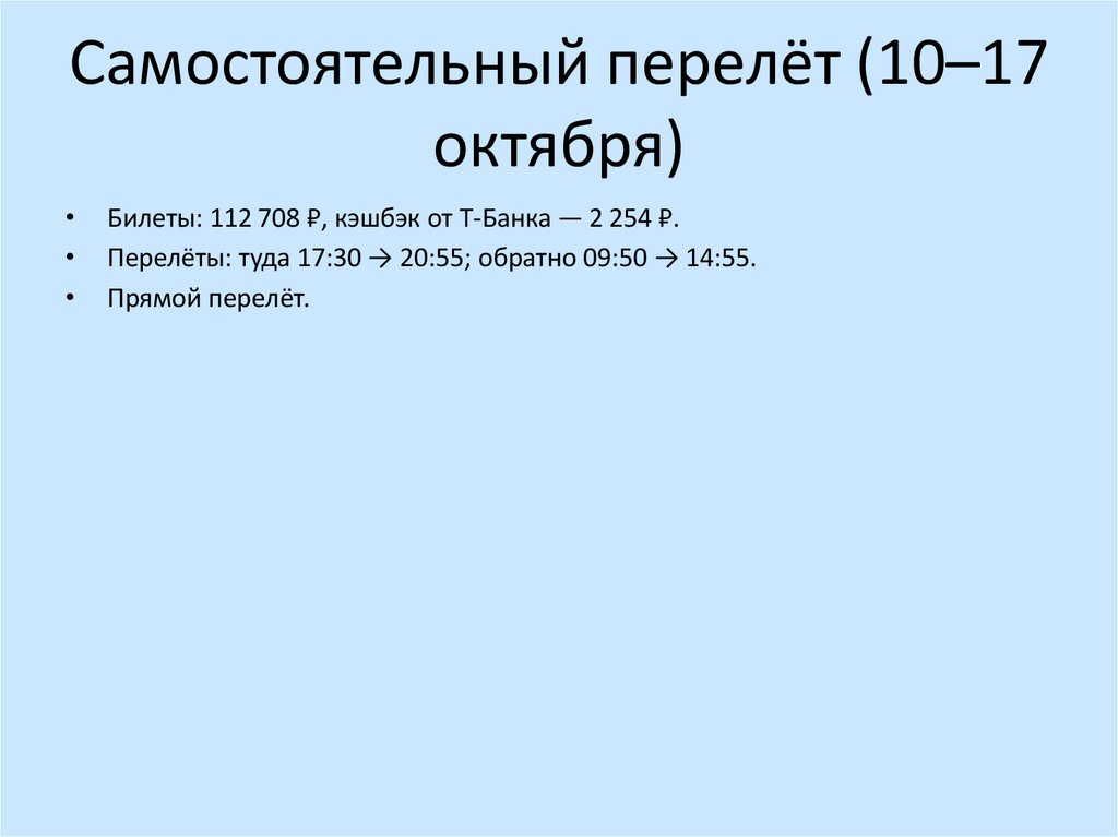 Билеты: 112 708 ₽, кэшбэк от Т-Банка — 2 254 ₽.