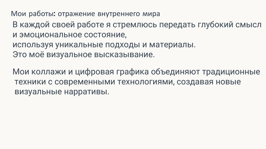 Мои работы: отражение внутреннего мираВ каждой своей работе я стремлюсь передать глубокий смысл