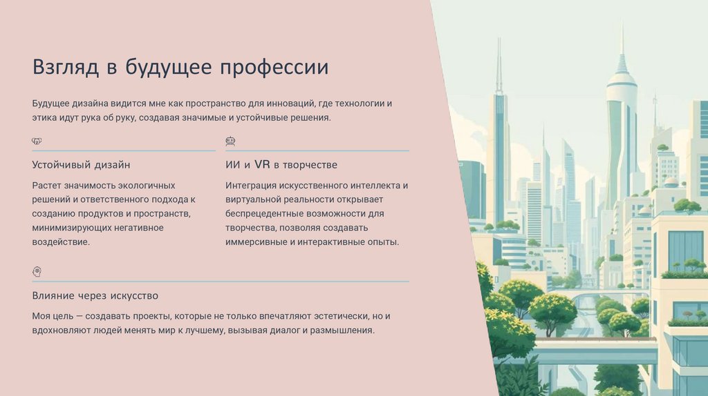 Взгляд в будущее профессииБудущее дизайна видится мне как пространство для инноваций, где технологии и