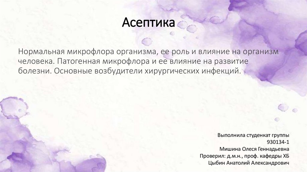 АсептикаНормальная микрофлора организма, ее роль и влияние на организм