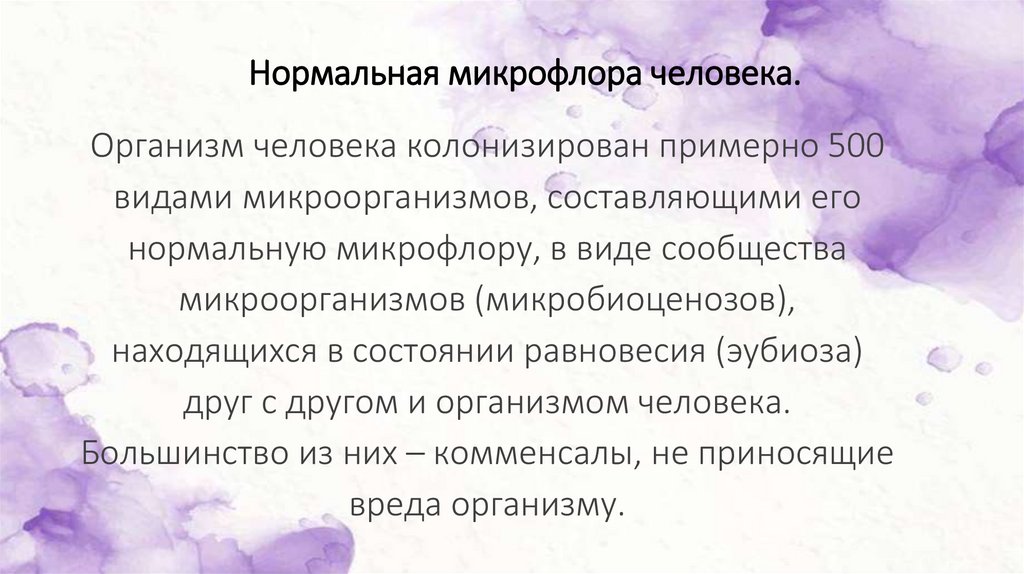 Нормальная микрофлора человека.Организм человека колонизирован примерно 500