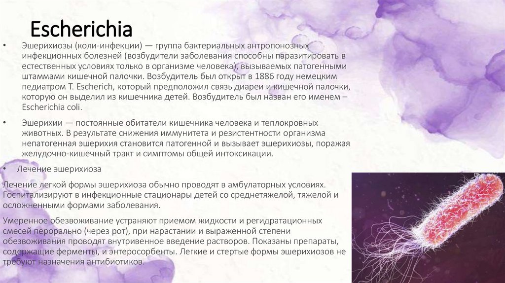 педиатром T. Escherich, который предположил связь диареи и кишечной палочки,