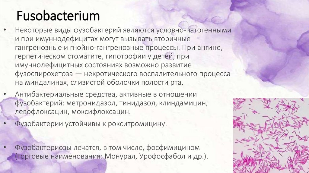 FusobacteriumНекоторые виды фузобактерий являются условно-патогенными