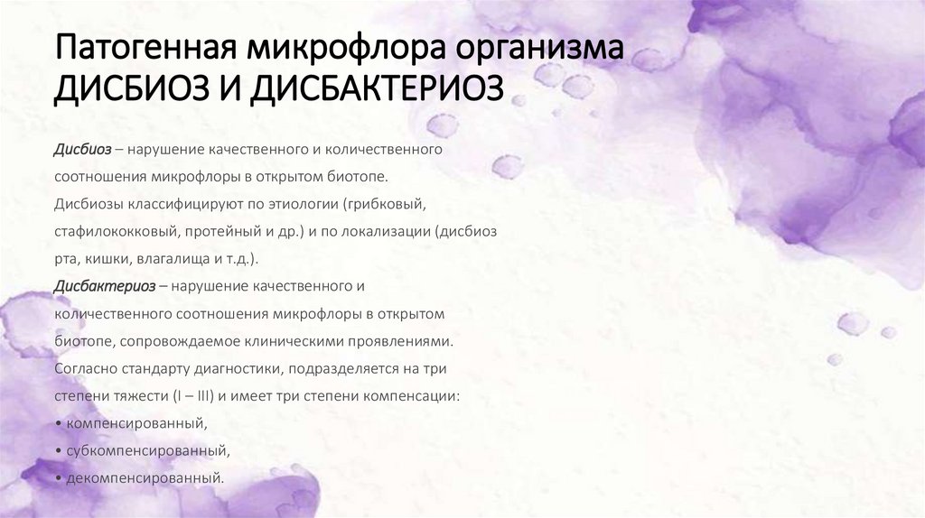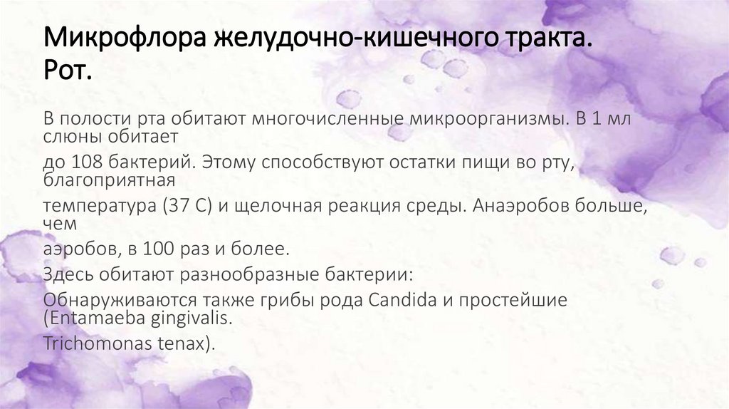 • реже встречается транзиторная микрофлора (Staphyl. aureus., Streptoc. pyogenes).