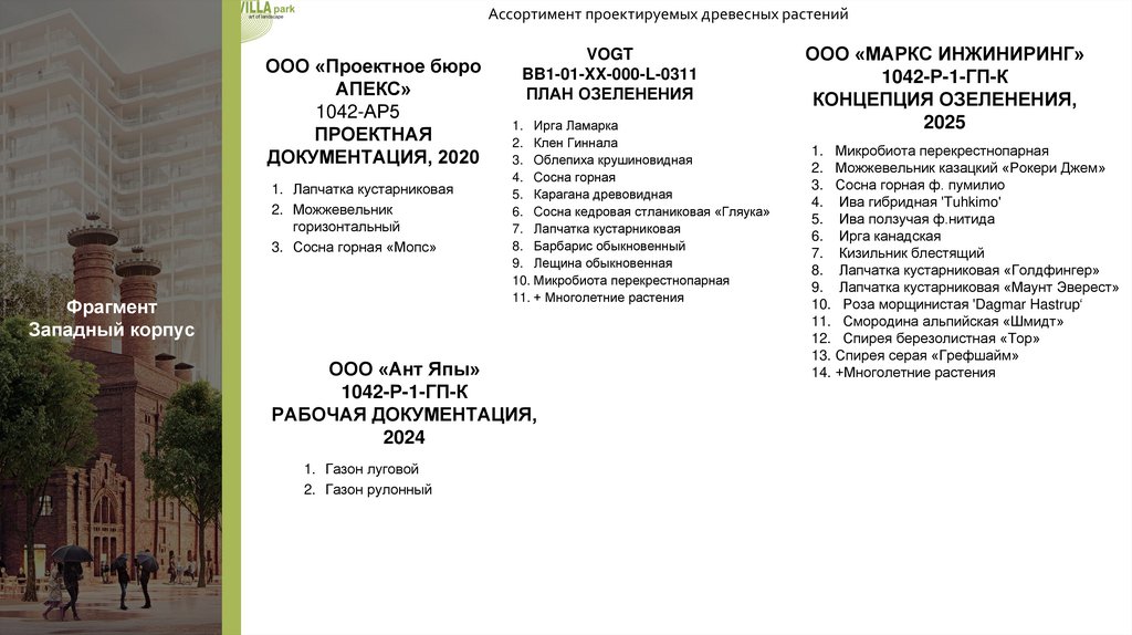 Ассортимент проектируемых древесных растенийООО «Проектное бюро