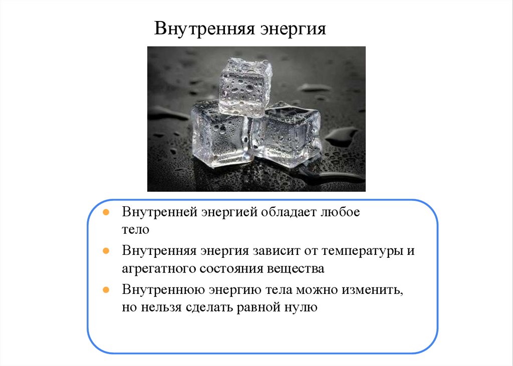 Внутренняя энергия● Внутренней энергией обладает любое