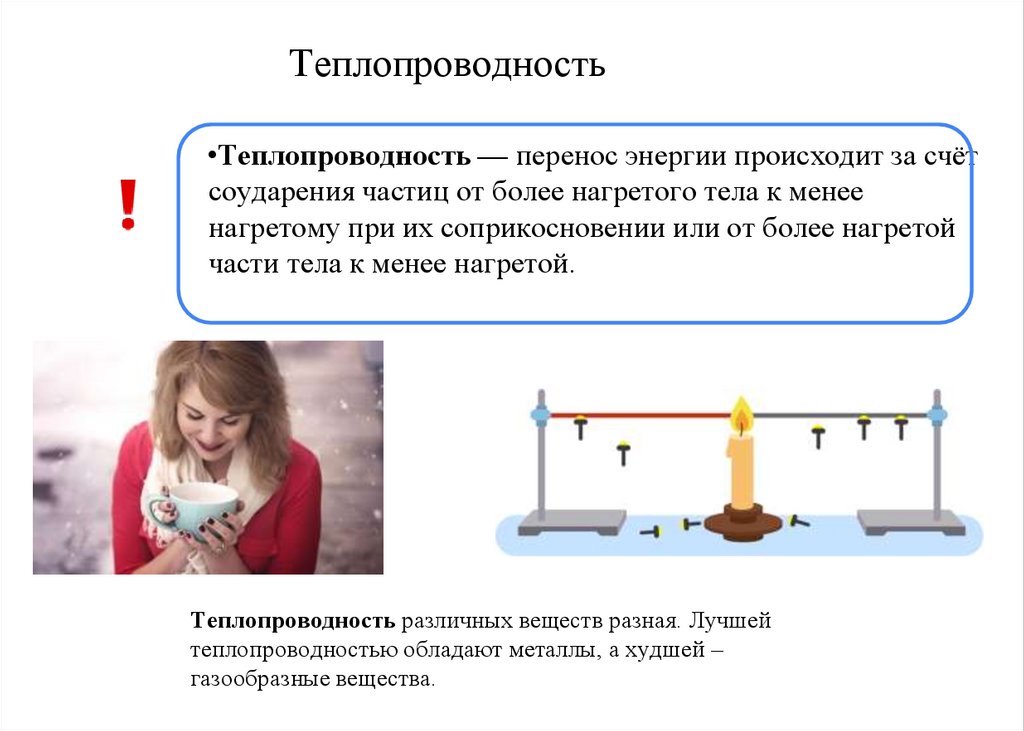 Теплопроводность•Теплопроводность — перенос энергии происходит за счёт