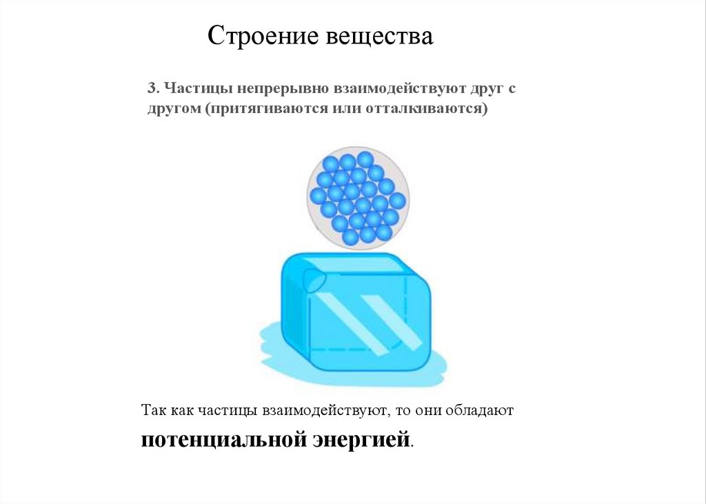 Строение вещества3. Частицы непрерывно взаимодействуют друг с