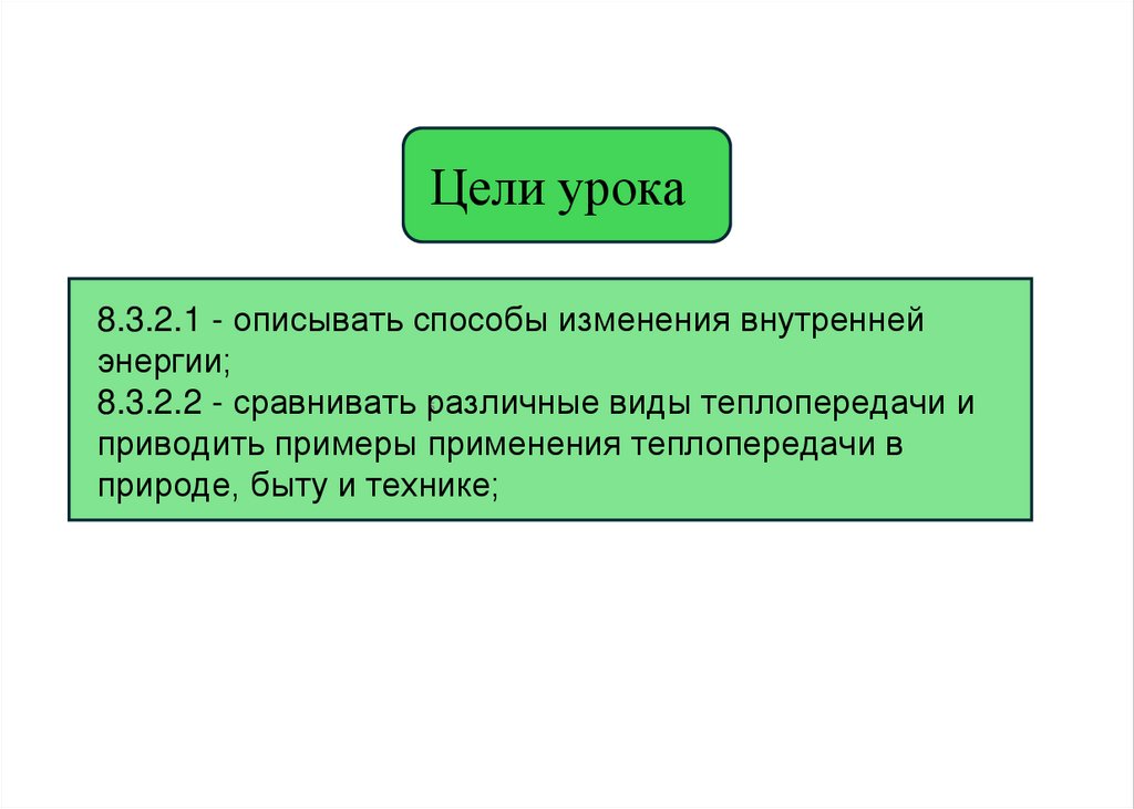 Цели урока8.3.2.1 - описывать способы изменения внутренней