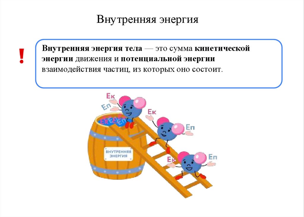 Внутренняя энергияВнутренняя энергия тела — это сумма кинетической