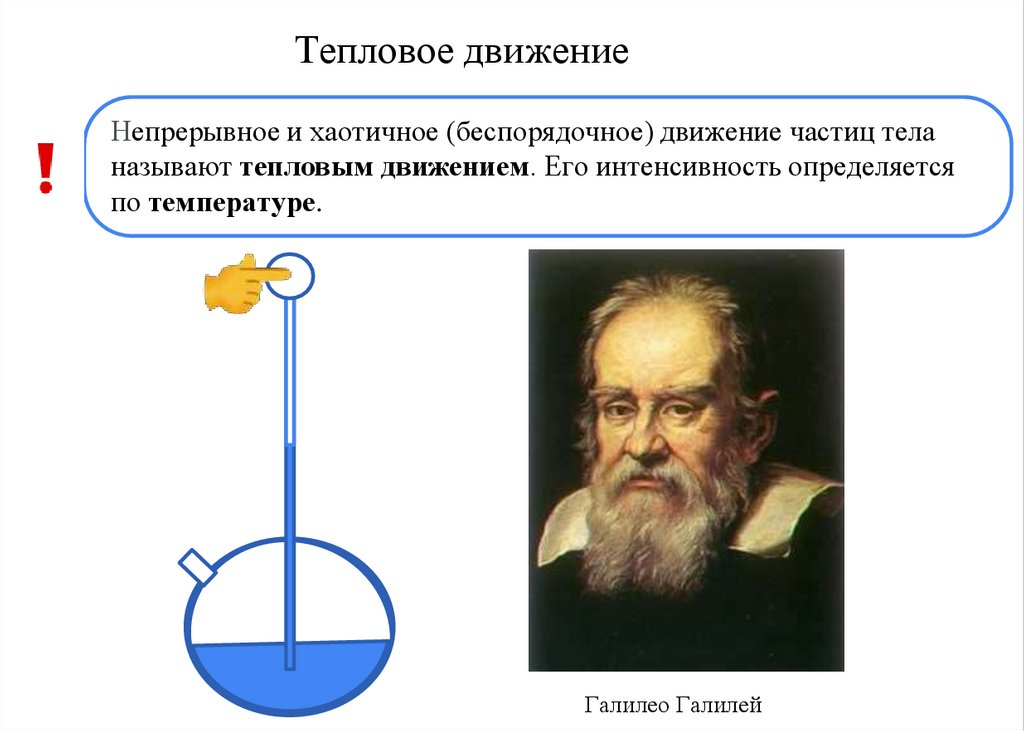 Тепловое движениеНепрерывное и хаотичное (беспорядочное) движение частиц тела